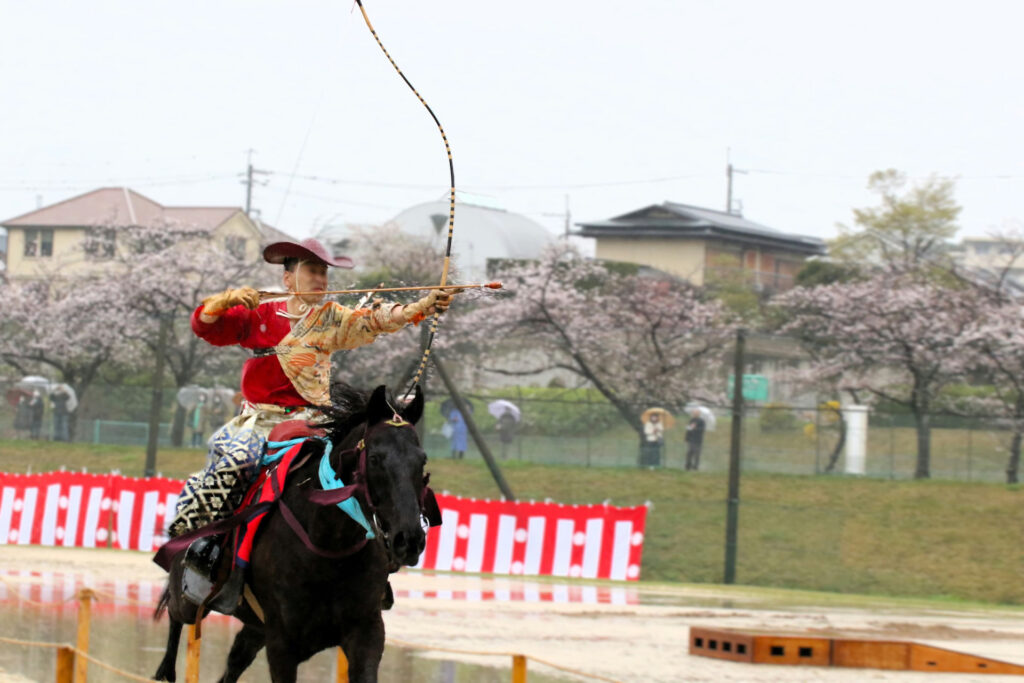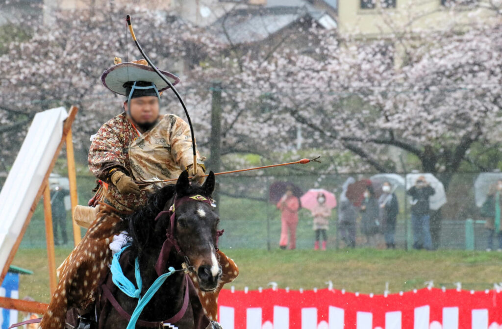 <2026年1月18日> 第3回流鏑馬まつり、壱之射手の一場面です。 一の的を射抜いた直後、次の二の的へと向かう瞬間が写されています。 このとき射手が身に着けている衣装は、鎌倉時代の武士の衣装である狩装束(かりしょうぞく)。 的中の余韻に立ち止まることなく、馬上で姿勢を保ち、気持ちを切り替え、次の射へと進む。 その一連の動きには、長い稽古と積み重ねが凝縮されています。 武士の装束に身を包み、稽古に支えられた射が重ねられていく―― この写真は、流鏑馬が今も生きた形で受け継がれていることを伝えてくれます。 積み重ねてきた稽古と、多くの支えの上にある流鏑馬まつり。その姿を、これからも大切に受け継いでいきます。