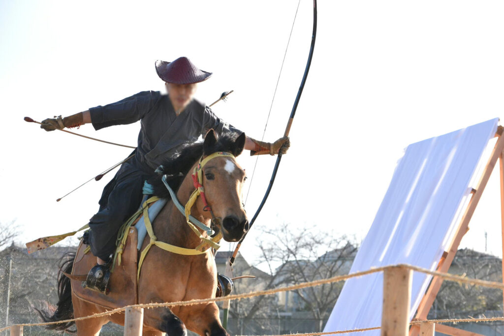 <2026年1月17日> 第2回流鏑馬まつり、朝練の一場面です。 本番とは違い、練習のときだからこそ撮ることができた角度の写真です。 流鏑馬をご覧になった際、「馬に乗りながら、どのように矢を番えているのだろう?」 と疑問に思われたことはないでしょうか。 この写真では、その動きの一端を見ることができます。 矢は下に引き抜き、そこから弓へと運ばれます。 その一連の動作を、走る馬の上で行い、そして次の的に向かって矢を放つ――。 言葉にすると短い動きですが、長い稽古の積み重ねがなければ成り立ちません。 どれほどの鍛錬が必要か、想像するだけでも容易ではないことが伝わってきます。 ぜひ実際に会場へ足を運び、長い稽古の時間に支えられた流鏑馬を、目の前で感じていただけたらと思います。 皆さまのご支援が、こうした稽古の継続と、まつりの開催につながっています。引き続き、温かい応援をよろしくお願いいたします。